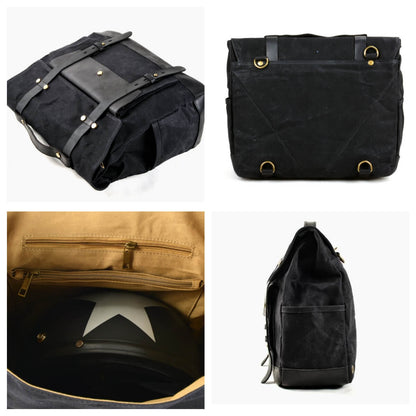 Multi-compartment design: Main pocket + exterior slots (fits 15.6" laptop or motorcycle half-helmet)